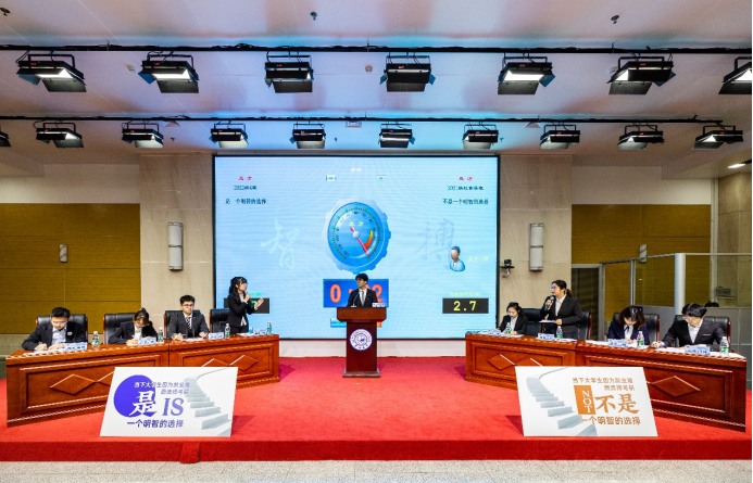 决赛中,双方辩手围绕“当下大学生因为就业难而选择考研是/不是一个明智的选择”这一辩题进行激烈讨论。是因为本科就业难就逃避就业转去考研,还是为了提升自己寻找人生的意义与方向而考研?正反双方围绕自己的立论为老师和同学们带来了一场精彩绝伦的视听盛宴。且看你来我往,针锋相对,字字珠玑,引得在场观众掌声连连。