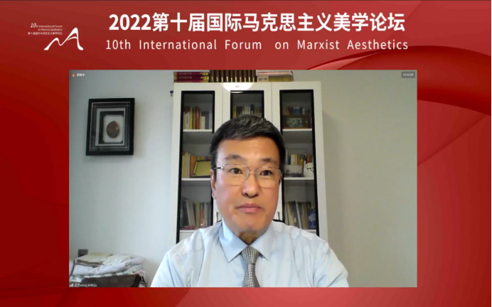 浙江大学传媒与国际文化学院、马克思主义美学专业委员会主任委员王杰教授介绍了国际马克思主义美学论坛的发展历程,对当代马克思主义美学研究提出了自己的思考,认为在今天这样一个时代,马克思主义美学依然具有强大的生命力,同时也要倾听世界美学的声音,在与世界美学的对话中实现自身的发展。