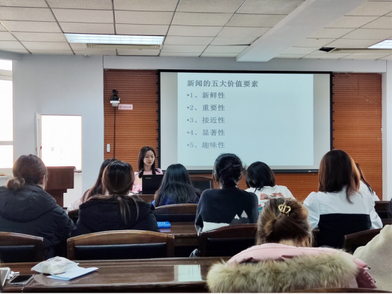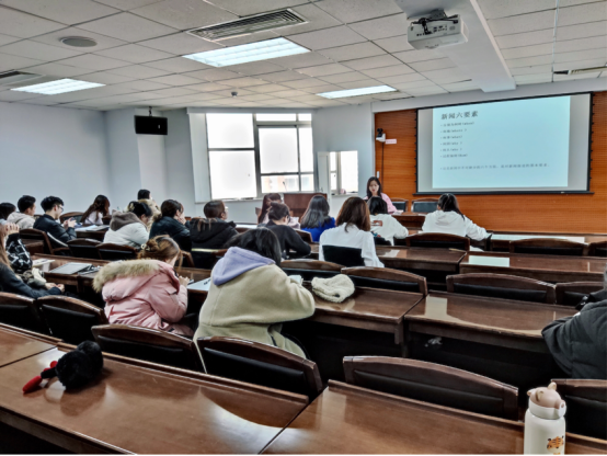 此外,王会子同学着重讲解了撰写新闻稿的注意事项,提醒同学们在撰写新闻稿时要避免逻辑上的错误,学会区分新闻语言和文学语言并提升自身的专业性。