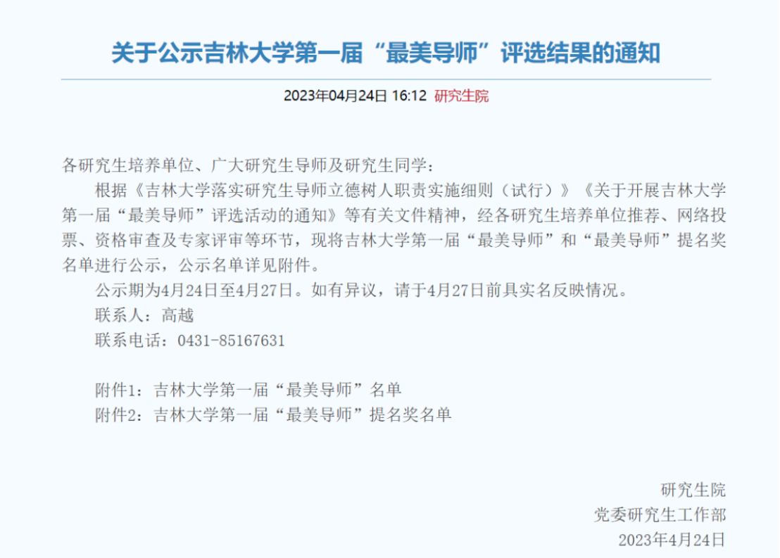 根据《best365官方中文网页版登录落实研究生导师立德树人职责实施细则(试行)》《关于开展best365官方中文网页版登录第一届“最美导师”评选活动的通知》等有关文件精神,经各研究生培养单位推荐、网络投票、资格审查及专家评审等环节,拟定20位教师获best365官方中文网页版登录第一届“最美导师”、“最美导师”提名奖。