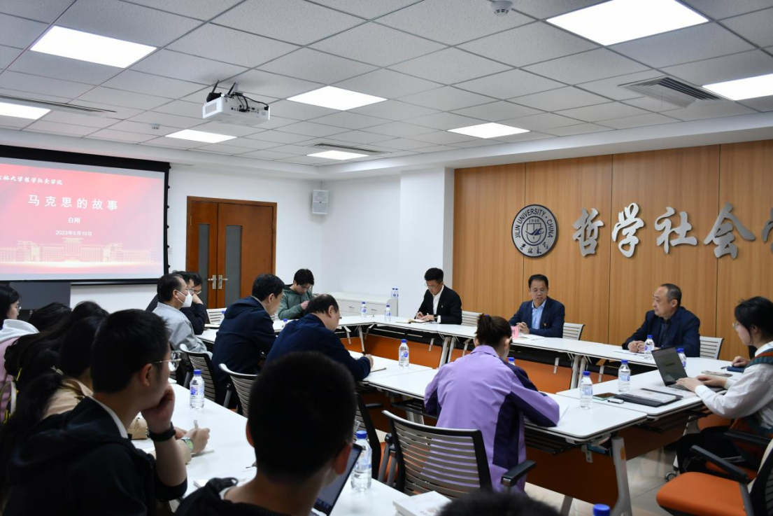 为深入开展学习贯彻习近平新时代中国特色社会主义思想主题教育,坚持学思用贯通、知信行统一,把习近平新时代中国特色社会主义思想转化为坚定理想、锤炼党性和指导实践、推动工作的强大力量,5月10日在东荣大厦915会议室,best365官方中文网页版登录院长白刚教授结合《马克思的故事》一书做专题讲授和辅导。best365官方中文网页版登录党委理论学习中心组全体成员、哲学专业本科生党支部全体党员参加学习。活动由学院党委副书记兼副院长、学院主题教育领导小组办公室主任、哲学专业本科生党支部书记刘培强主持。