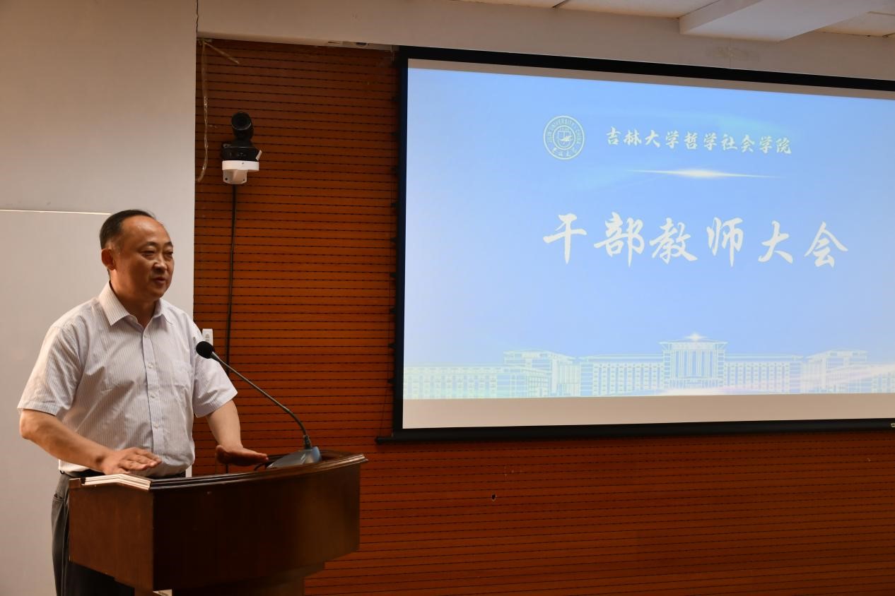6月9日下午,best365官方中文网页版登录召开干部教师大会。哲学社会科学资深教授孙正聿,学校党委副书记、副校长王利锋,党委组织部部长姚毓春,best365官方中文网页版登录领导班子全体成员,各系、各行政科室主要负责人,教职工代表参加了会议。会议由院长白刚主持。