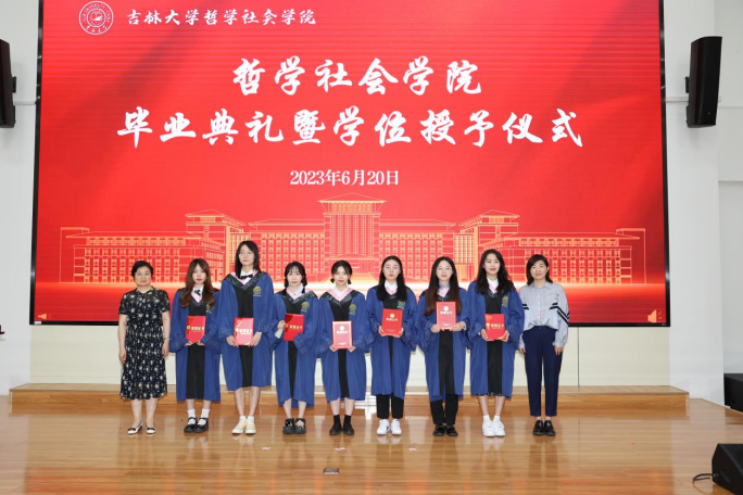 典礼第三项,学院党委副书记赵洁、副院长曲红梅为研究生优秀毕业生颁发证书,学院副院长朱文君为本科生优秀毕业生颁发证书。主席台上,学院老师们与同学们握手合照,手与手之间的相握,象征着哲社优秀学术传统与思想精神的代际传承,一如学院创建之初,一代又一代大师肩负起建设学院学术事业的重任,不断铸就学院学术上的新开创、新辉煌。而今学院毕业的学子们,接过这一伟大传承,必将笃行不怠、砥砺前行!