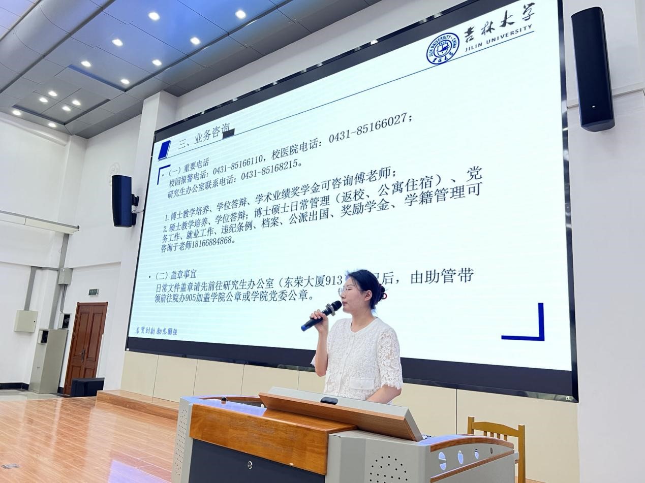 接下来,于洋老师从日常管理、评奖评优、研究生教学培养、入党注意事项、违纪处分管理规定等五个方面,为新生同学详细介绍了入学后科研、生活的相关信息。最后,于老师引用孙正聿老师的一句话作为结尾:希望同学们在生活中保持平常心,在学术上保持异常思。