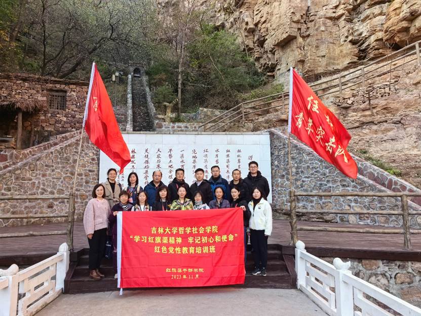 红旗渠精神,是中国共产党人的精神谱系中一面极具感召力的光辉旗帜;红旗渠,是河南人民不怕困难、艰苦奋斗历程的一座不朽丰碑。为进一步开展学习党的二十大精神,深入贯彻落实习近平新时代中国特色社会主义思想主题教育,增强基层党组织的凝聚力和战斗力,提升党员党性修养和思想素质,由best365官网党委筹划组织,学院党委副书记兼副院长刘培强老师带队,副院长芦恒教授、哲学基础理论研究中心副主任李生琦老师以及学院各党支部书记、支部委员等共计18人组成红色教育学习组,集体前往河南红旗渠干部学院开展“学习红旗渠精神,牢记初心和使命”红色党性教育培训活动。
