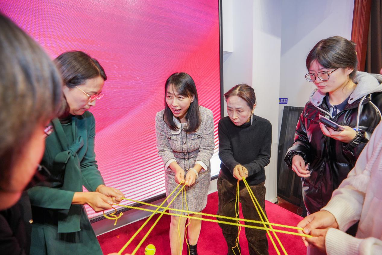 叶层层成荫,木棵棵成林,大家肩并肩努力,团结造就美好明天。接下来,进入到新一轮的游戏环节:“纵横交错”。参赛人员分别组成队伍,商量战术,彼此鼓劲打气,顺利完成挑战。现场笑声不断,老师们的“神操作”也成功将氛围推向高潮。