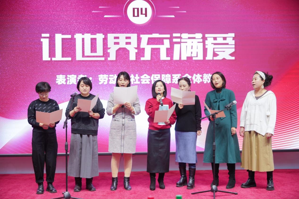“我们共风雨,我们共追求”,无论何时,“爱”总是最能传递温暖的力量,是连接我们心灵的桥梁。来自劳动与社会保障系的老师们为大家带来歌曲《让世界充满爱》。在温暖的语调、悠扬的歌声中,在对生活的满腔热忱、对生命的满怀期待中,传递着心底那一缕人文柔情。