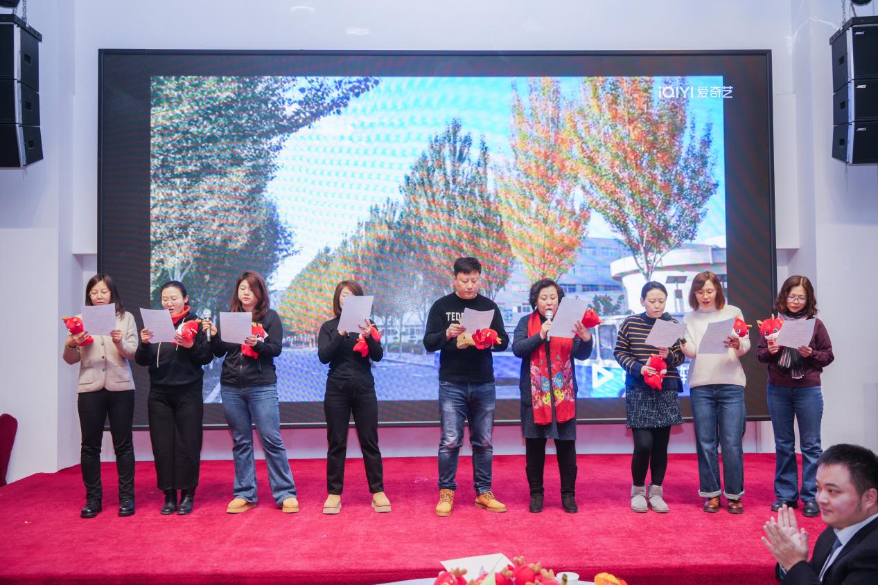 伴着歌声余音,张彦彦、刘双、黎兵、高玉林四位老师为大家带来精彩的《校园三句半》表演,从操场的趣闻、课堂的逸事,到新年的祝愿、来日的祝福,老师们以幽默有趣的口吻、轻松欢快的节奏引爆全场,在愉悦之余更有那一抹校园的羁绊始终牵连着你我。