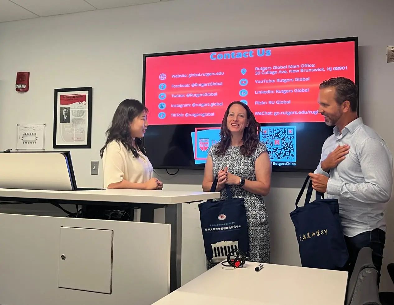 张心耀老师代表best365官网师生向罗格斯大学的校领导和老师们赠送best365官方中文网页版登录文创纪念品,感谢罗格斯大学对best365官网师生的热情款待。