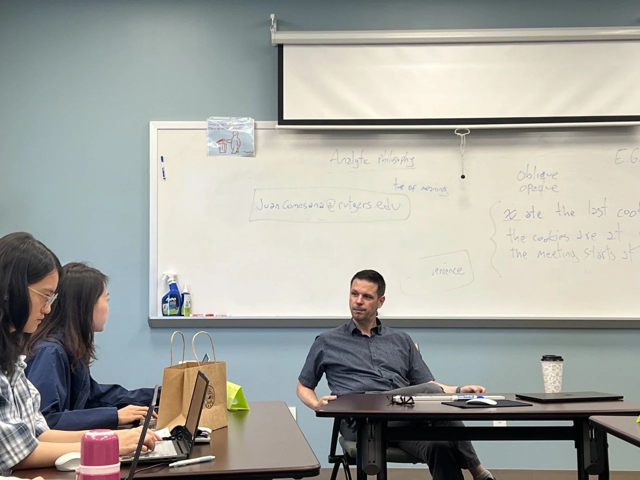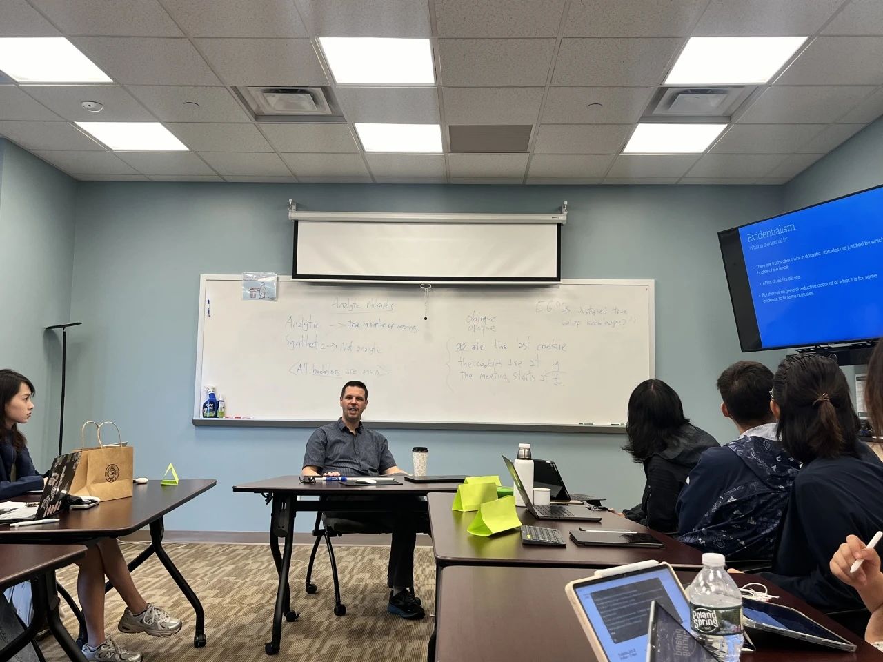 下午,Michael Glanzberg教授和同学们探讨了哲学逻辑中的一些核心问题。Glanzberg教授向同学们提出了一系列问题,如“是什么让逻辑推论与其他推论不同?”“我们该如何选择真正正确的逻辑?”“是否有可能修正逻辑?”“如果世界发生了足够大的变化,逻辑会改变吗?”。
