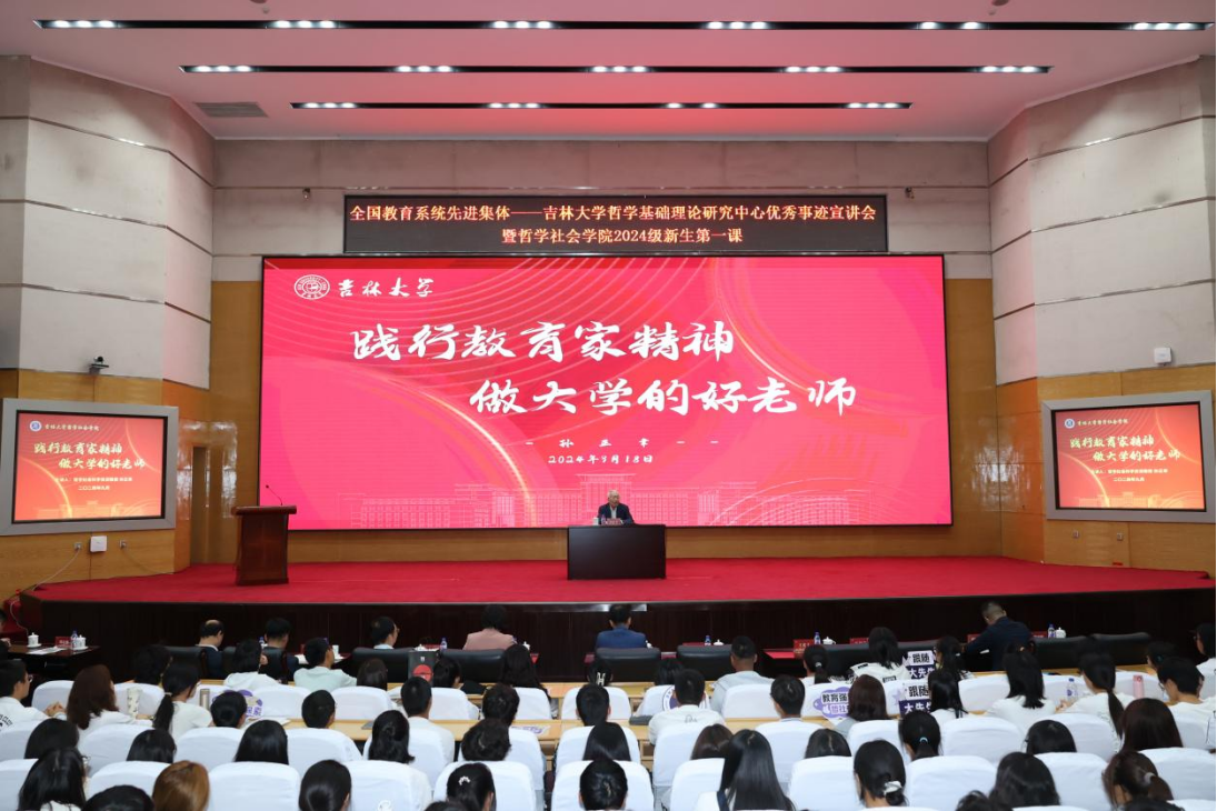 为深入学习贯彻全国教育大会精神,充分发挥“全国教育系统先进集体”——best365官方中文网页版登录哲学基础理论研究中心优秀事迹对学院师生的凝聚力、团结力和引领力,9月18日在东荣报告厅,哲学社会科学资深教授孙正聿以“践行教育家精神,做大学的好老师”为题,为best365官方中文网页版登录2024级新同学讲授第一课,带领学院师生深入学习体会教育家精神与教育的本质,引导学院师生赓续优良治学传统,打好教书育人、成长成才的“基本功”。