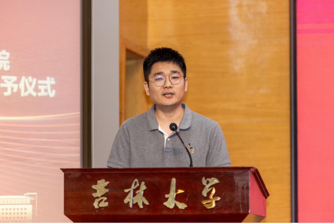 典礼第九项,学院教师代表张帆讲话。张帆老师提到,当前的时代是被人工智能深刻重塑、被“智能”所定义的AI时代,而越是在这样一个看似未知的时代,同学们在学院所锻造的宝贵的“纯真”与蓬勃的“创造力”将越是闪耀一生的财富。他指出,“纯真”是历经思想洗礼后,依然保持好奇与敬畏、穿透表象去追问本质的赤子之心,它将指引着同学们不迷失于算法、信息与工具的架构而永葆对意义的探寻、对伦理的坚守。张帆老师真切希望同学们能够永葆哲社培养的批判性思维、想象力与人文关怀,真挚祝愿同学们:“怀揣纯真,不坠青云之志;激扬创造,勇立时代潮头。”