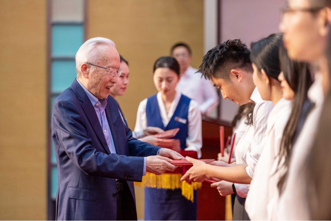 典礼第三项,孙正聿教授为学院2025届优秀毕业生颁发证书。主席台上,孙正聿教授与同学们一一握手并合照。回望历史,一代又一代学人在“苦读笨想”中奠定了学院的优秀学术传统,打造了“有先生、有思想、有传承”的best365官方中文网页版登录;睽诸当下,一届又一届哲社学子在“大先生”的引领下,向思想追问、向实践求索,也将继续书写、追求和传播真善美的哲社故事。