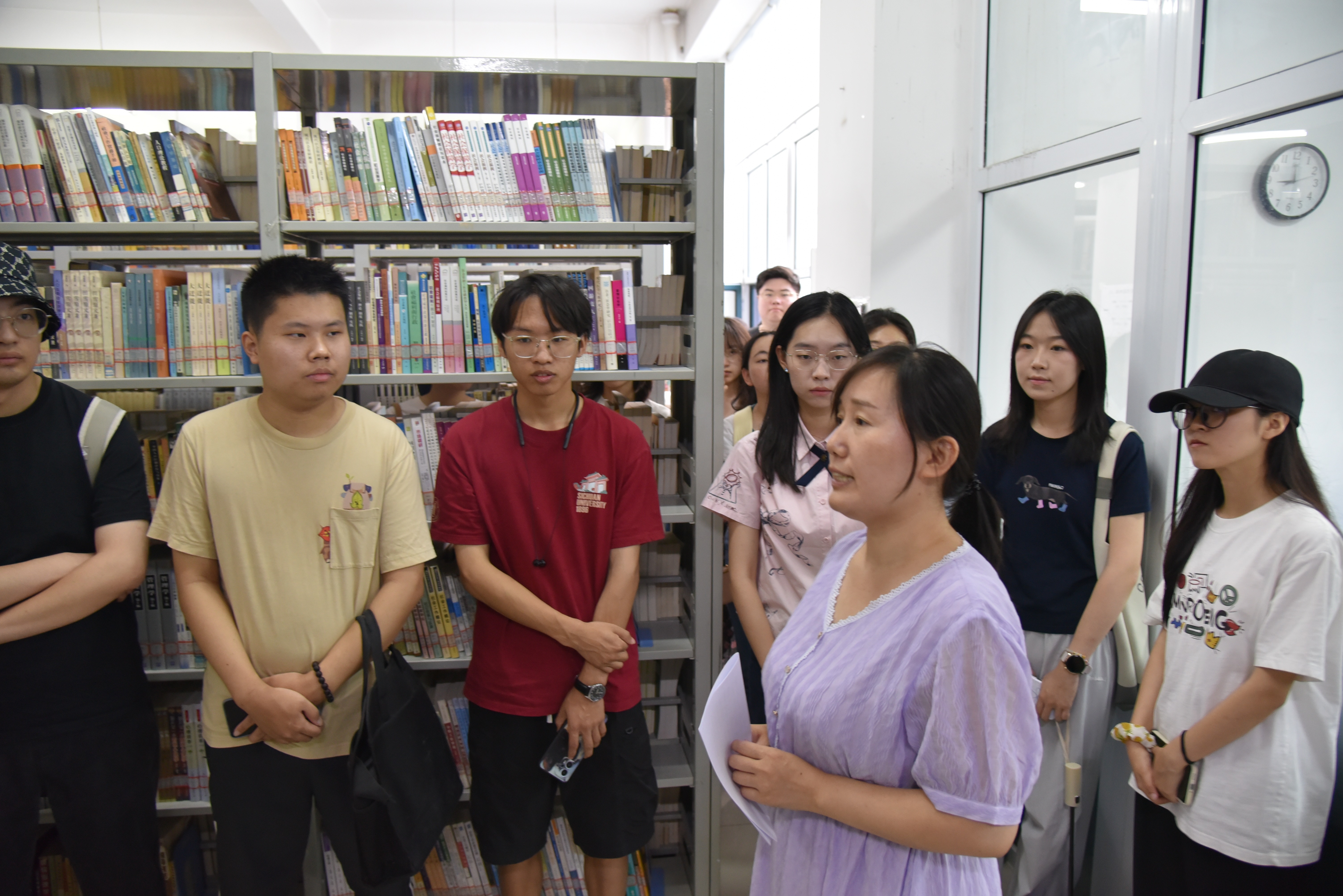 (崔爱红老师为同学们介绍学院资料室和中心资料室的藏书情况