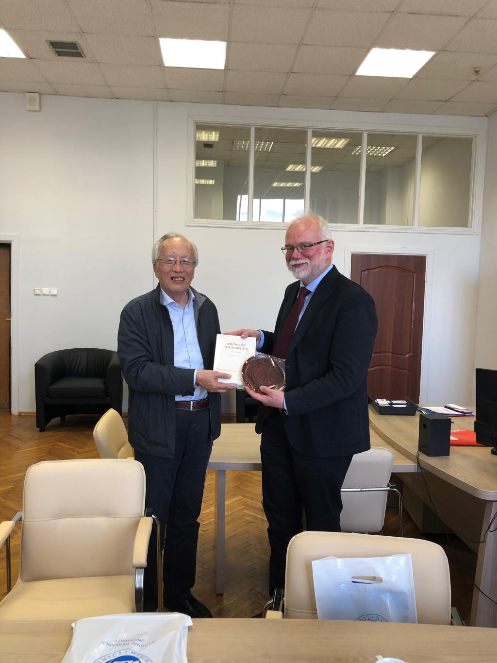 代表团首先访问了俄罗斯国立高等经济大学莫斯科校区。该校区人文学院院长Mikhail Anatolyevich Boytsov教授、东方与古典研究所Elizaveta Volchkova教授、学院外事主管 Albina Gasimova女士参加了会谈。双方就各自学院和研究中心的基本情况做了介绍。孙正聿教授重点介绍了改革开放以来中国哲学的发展,并将自己最新出版的《改革开放以来的当代中国哲学史(1978-2009)》一书赠送给Boytsov教授。Boytsov教授也就当代俄罗斯的哲学和社会学的发展做出评价,并认为两院在马克思主义哲学、政治哲学、德国古典哲学、中国哲学等研究方面可以有巨大的合作空间。
