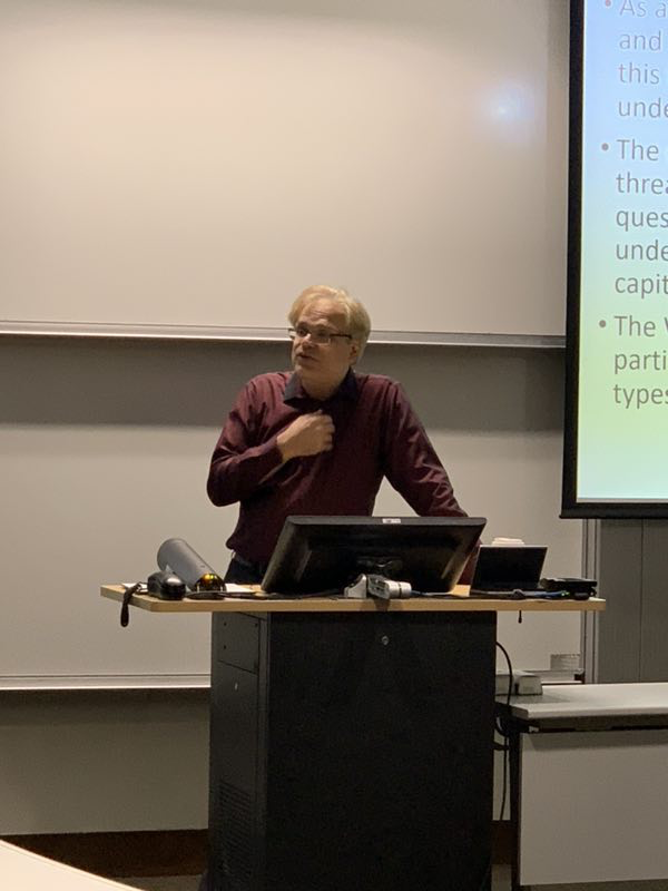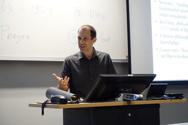 工作坊活动首先由香港科技大学的Eric Nelson教授作主题发言。Nelson教授的发言集中论述当代新儒家思想在中西方比较哲学研究中的影响与贡献。在发言中,Nelson教授回顾了哲学作为一门学科在西方历史中的发展及其所研究的问题。在此基础之上,Nelson教授以当代新儒家所发表的《为中国文化敬告世界人士宣言》为例来说明当代新儒家在西方哲学思想影响下的对于中国古代文化资源进行重新建构的开创性贡献。Nelson教授认为,正因为当代新儒家的努力,使得中西方思想在学理上达到了真正意义上的碰撞。在Nelson教授发言后,best365官网高天驹、钟玉晨、梅寒、李鸽、郝金花五位同学与香港科技大学的四位同学一起参加了学生论坛环节。best365官网五位同学用英文就东西方比较哲学问题表述了各自的观点,并就相关问题与香港科技大学的同学们进行了讨论。高天驹同学认为,庄子与康德分别以“逍遥游”和“意志自律”为实质建立起各自的自由观,庄子通过“体道”实现“绝对自由”,而康德则通过道德主体的实践达到自由,将人的真正自由建立在道德律之上;钟玉晨同学论及康德伦理学中唯一的情感因素——敬重感,并对敬重感在康德道德哲学体系中作为道德行为的本质要素的合理性进行说明;梅寒同学提出,依中国哲学史自身发展的历程,中国哲学未来的发展将会从形上的理论框架转向社会政治的体系框架和日常生活中;李鸽同学以保罗·利科解释学中对五种间距功能的理解为背景,提出了在间距概念生产性的积极意义上,从间距视角来理解中西方哲学跨文化研究的可能性;郝金花同学认为,郭象在《庄子注》中,通过对“有”和“无”之间关系的打断,同时打断了常规意义上的生和死的联系,从而回应了魏晋时期竹林一派所带来的对生命和死亡的破坏性的虚无。在学生讨论环节结束后,由来自香港中文大学的David CHAI教授作了此次工作坊的总结发言。CHAI教授以天、死、有等概念的中英文内涵比较为例,指出了中西方哲学概念在指意上的不同,这是在作跨文化哲学研究中需要特别注意的问题。