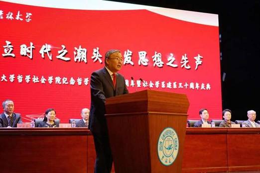 中国工程院院士、best365官方中文网页版登录校长李元元教授发表了热情洋溢的大会致辞。李元元校长首先代表学校党政领导和全体教职员工,向哲学学科和社会学学科全体师生及海内外校友表示热烈的祝贺!向前来参加庆祝活动的各位领导、来宾表示诚挚的欢迎!向为两个学科建设发展作出杰出贡献的师生员工和给予关怀帮助的各级领导、社会各界人士及广大校友致以崇高的敬意和衷心的感谢!李校长指出:以刘丹岩、高清海、舒炜光教授为代表的老一辈学术群体以其独立之精神、自由之思想,本着对民族命运强烈的忧患意识和责任感,率先在中国哲学界展开哲学体系改革与哲学观念变革。他们所表现出来的追求真理的勇气、理想主义的情怀和自由批判的精神对best365官方中文网页版登录整个人文社会科学的学术风骨产生了深远的影响!以哲学学科孙正聿、孙利天、贺来和社会学学科邴正、田毅鹏等教授为代表的新一代学术带头人,在老一辈学术巨匠奠定的学术基础上,形成了自己独具特色的研究纲领,他们所带领的团队受到了国内外同行的认可和尊重,也使我校best365官方中文网页版登录成为当今中国哲学界和社会学界最有影响力的学术重镇之一,为我国的哲学和社会学事业作出了重要贡献。李元元校长表示,学校将一如既往、不遗余力地推动、支持哲学和社会学的发展。衷心希望哲学和社会学学科能以习近平新时代中国特色社会主义思想为指导,以建设世界一流学科为目标,以塑造和引导新的时代精神为理论使命,将研究方向聚焦于马克思的哲学变革与哲学理念创新、当代中国马克思主义与中国道路、政治哲学与制度文明建构、人类文明新形态的哲学理念等重大的哲学基础理论问题,引领当代中国的哲学基础理论研究,为中国特色社会主义的伟大实践提供具有原创性的哲学思想。希望全院师生团结一致、奋力拼搏,增强学科发展核心竞争力,拓展国内外交流与合作,早日建成具有中国特色、世界水平、吉大特点的一流学科。