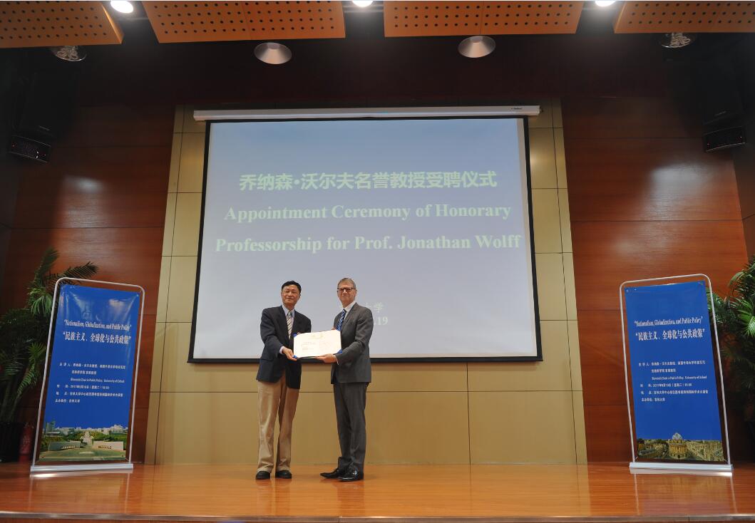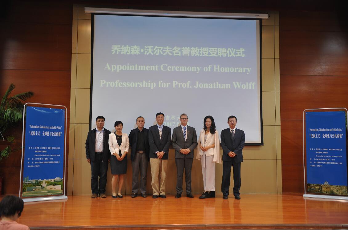 2017年9月19日,英国牛津大学乔纳森沃尔夫教授受聘best365官方中文网页版登录名誉教授的仪式在中心校区国际学术大讲堂举行。best365官方中文网页版登录副校长吴振武教授、best365官方中文网页版登录院长田毅鹏教授、副院长王庆丰教授、副院长曲红梅教授、国际合作与交流处副处长孟括出席了聘任仪式。