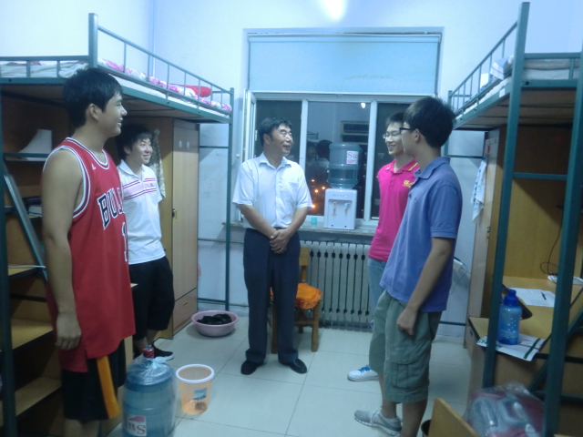 院系领导的到来受到了同学们的热烈欢迎,院系领导们逐个走访了新生寝室,与2011级的新生们进行了亲切的交谈并且仔细查看了新生的居住条件和环境,提醒同学们注意相关的安全事项。在学习方面,院系领导们告诉新生进入大学后一定要尽快转变角色,提高自身学习能力以适应大学生活,并鼓励各专业同学互相学习、互相帮助。