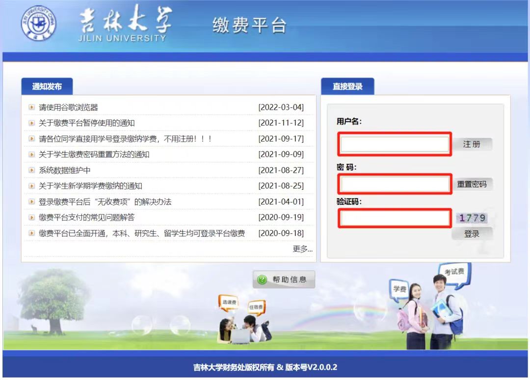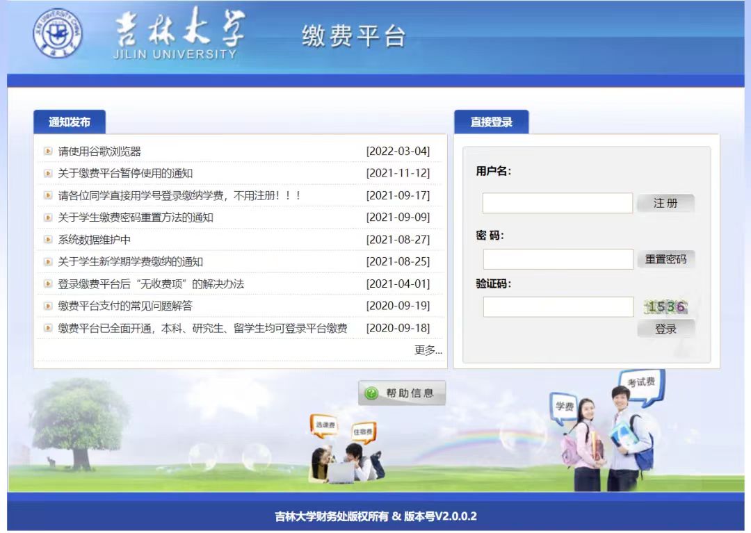 学生通过录入用户名(学号)、密码、验证码进入best365官方中文网页版登录缴费平台页面。