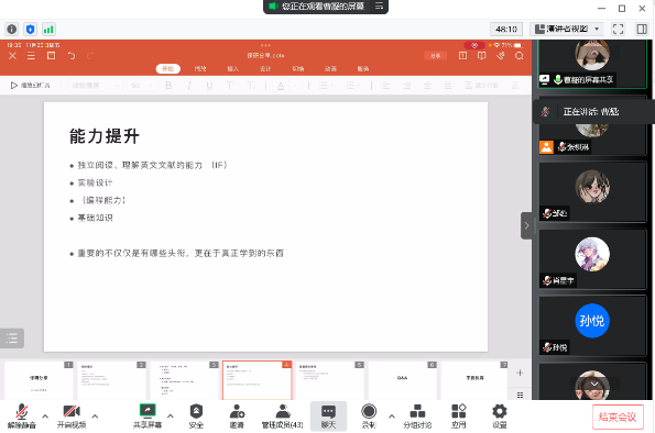而后曹凝师姐则分享了的更多关于科研思维以及夏令营申请的内容,鼓励师弟师妹们“不要放弃”,并且督促大家多多了解心理学相关领域,确定自己的兴趣。