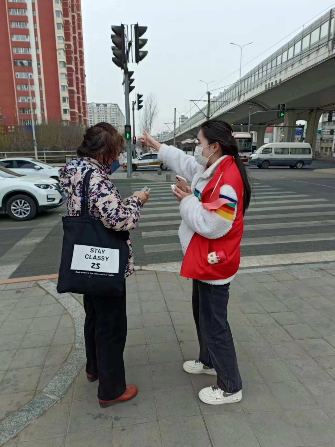 志愿者统一身着红马甲,手上拿着引导旗在繁忙的十字路口,进行文明引导。活动中,志愿者对行人横穿马路、闯红灯、逆向行驶、骑电动车不佩戴安全头盔等不文明行为予进行耐心地劝阻,以一个个真实的案例为他们讲解这类行为所具有的危害,以警示他们遵守交通法规。同时志愿者们积极帮助老弱病残通过斑马线,及时制止不礼让行人的机动车辆,细心详细地解答路人的咨询,为创造安全、文明的交通环境贡献了自己的一份力量。