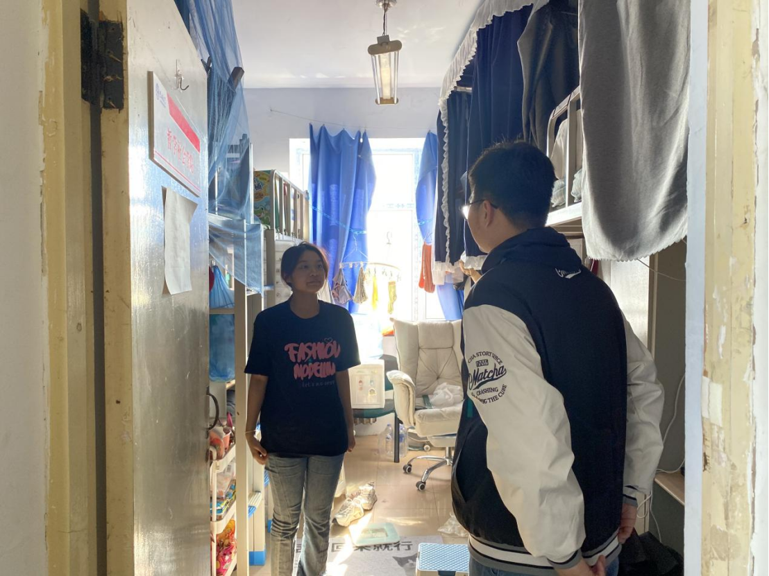 来到假期计划返乡同学寝室中,宋老师提醒同学们注意个人财产安全,旅途中注意保管贵重物品;严格执行请销假制度,积极进行家校沟通,确保同学们安全顺利返乡。