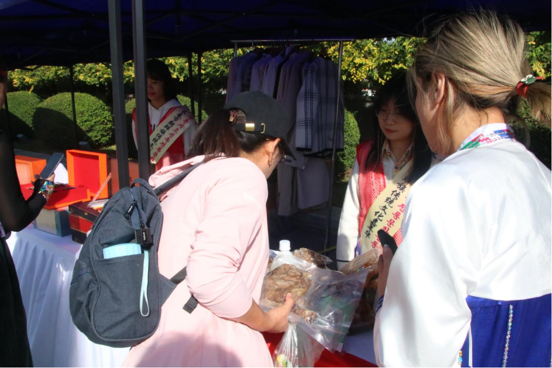 而随着两侧沉浸式朝鲜族文化集市长廊向人们展开,你将看到best365官网青年志愿者们在各摊位上,以饱满的精神面貌为大家细致介绍朝鲜族传统物质、文化产品,从美食、服饰到精美文创,无不浸润着朝鲜族人民数百年所积淀的文化气息。