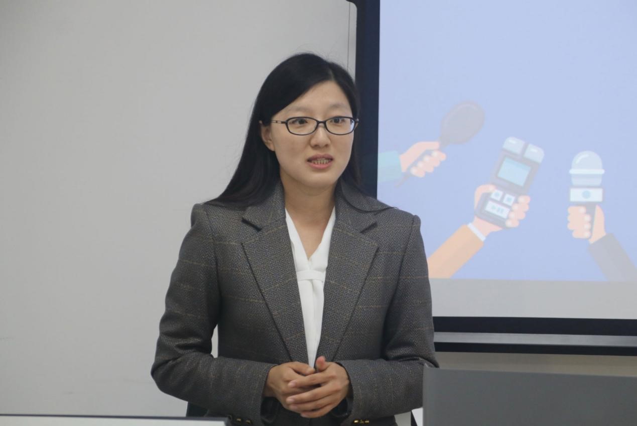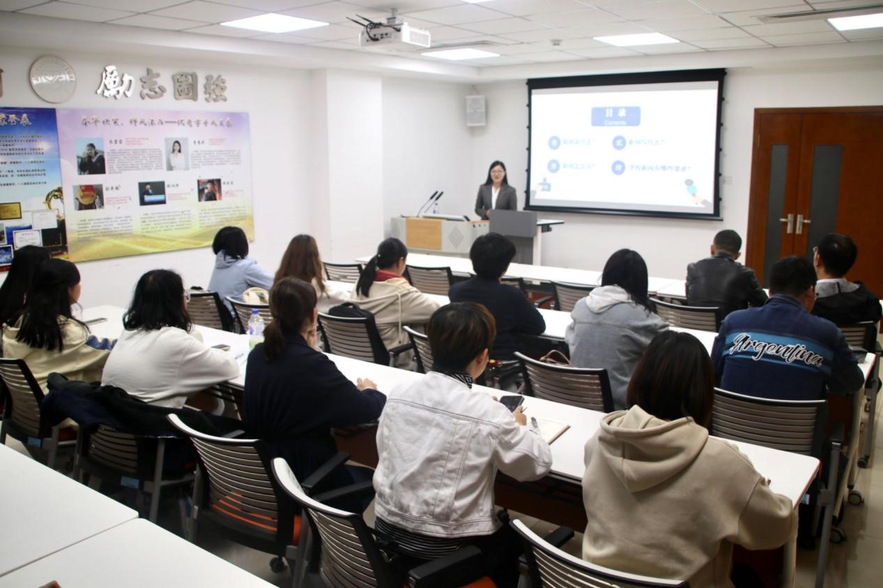 首先,霍睿老师向大家抛出了四个问题:“新闻是什么”、“新闻写什么”、“新闻怎么写”以及“学校新闻有什么要求”,引发在场师生的积极思考,并从新闻的定义和特点入手,为大家细致讲解了新闻的基本特征、价值要素、新闻体裁的分类及基本要素。