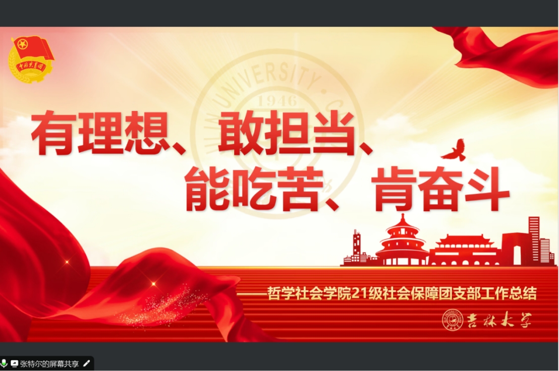 学院2021级4班团支部书记张特尔,以“有理想、敢担当、能吃苦、肯奋斗”为主题,围绕团的组织建设、团的思想教育、团的组织活动三个方面进行了汇报答辩,并表达了对未来团支部建设的期待。