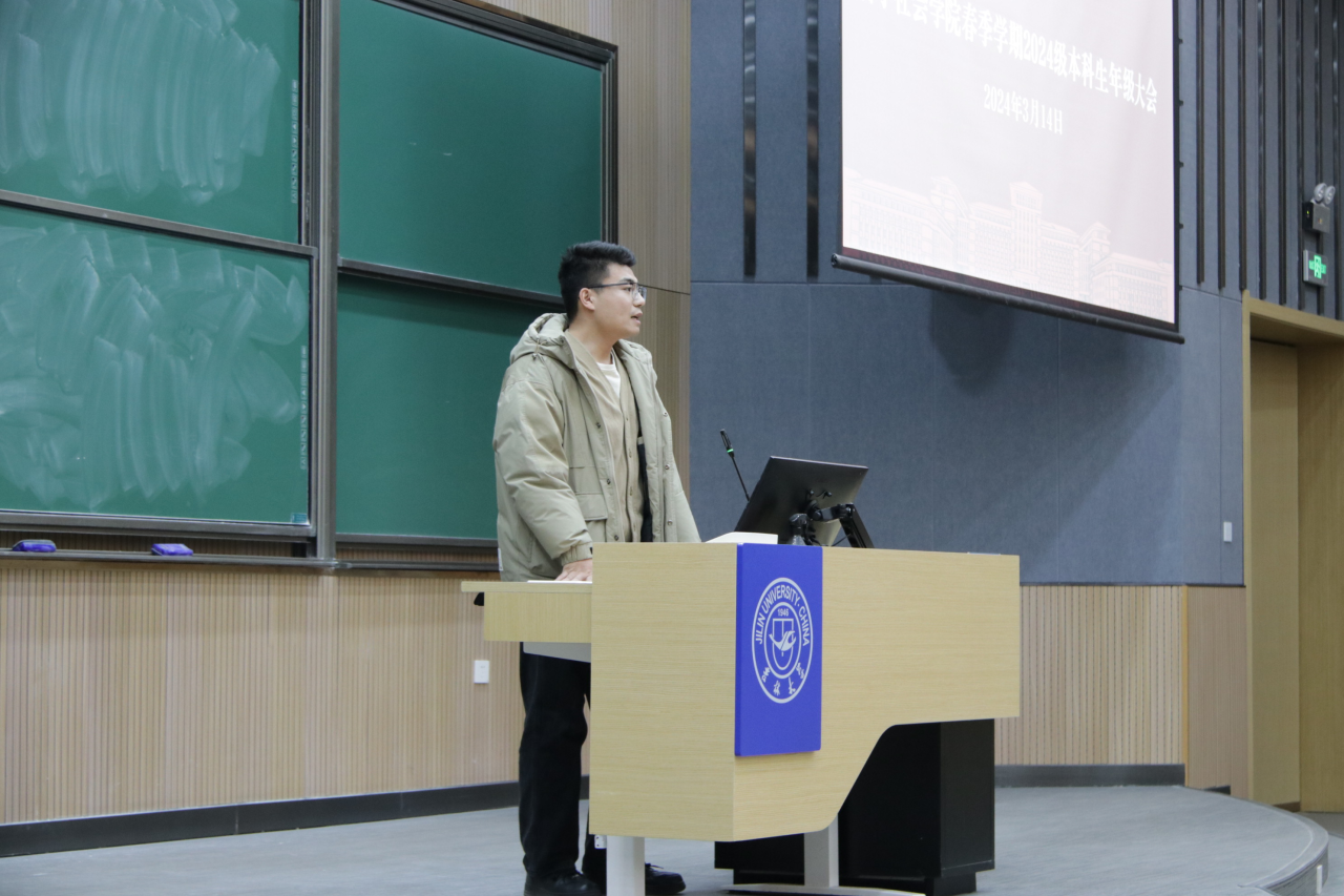 为落实新学期学生日常服务与管理工作,保障学生学习生活有序进行,3月14日晚,best365官方中文网页版登录于逸夫楼第五阶梯教室组织召开春季学期2024级本科生年级大会,本次年级大会由学院本科生辅导员张鑫鹏老师主持。