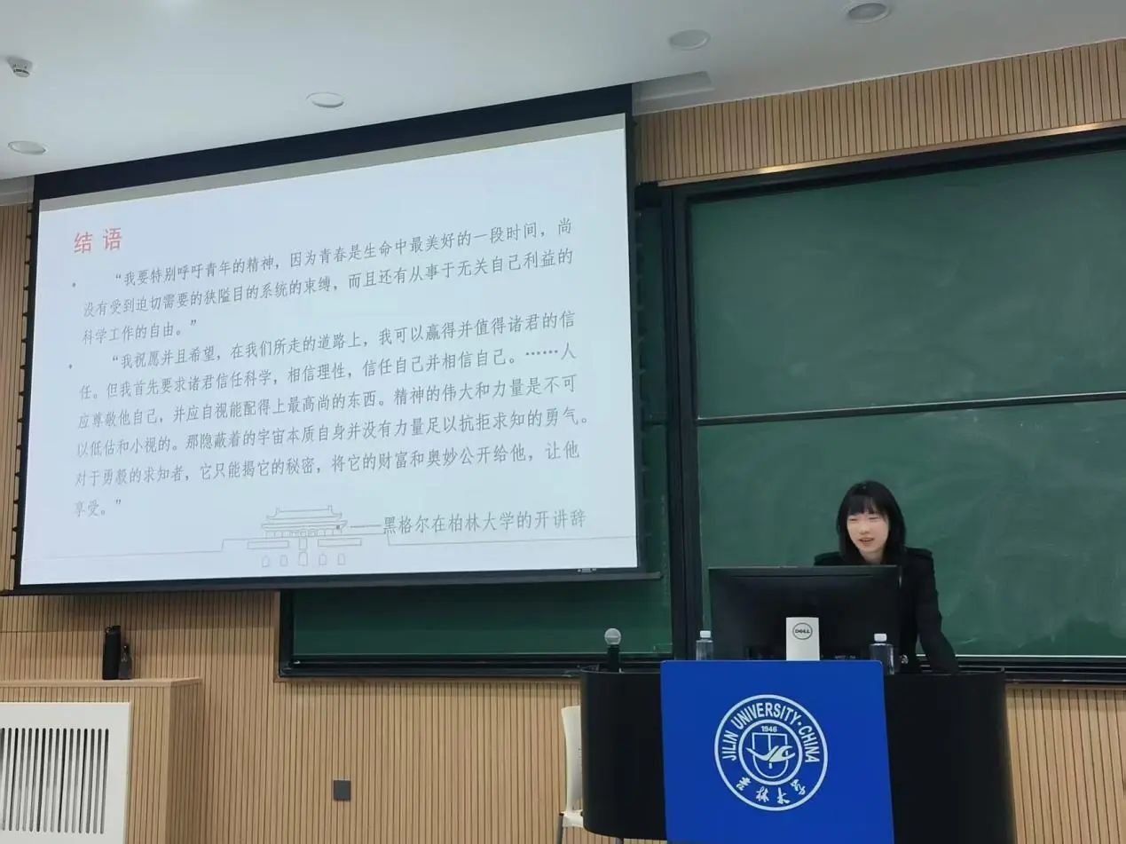 讲座最后,高天驹老师引用黑格尔在柏林大学的开讲辞激励同学们要始终相信精神的力量,永葆求知的勇气,信任并相信自己,以一位心灵上的“大人”期许自身,收拾精神、自作主宰,始终率真而自由地跋涉在“林中路”上。