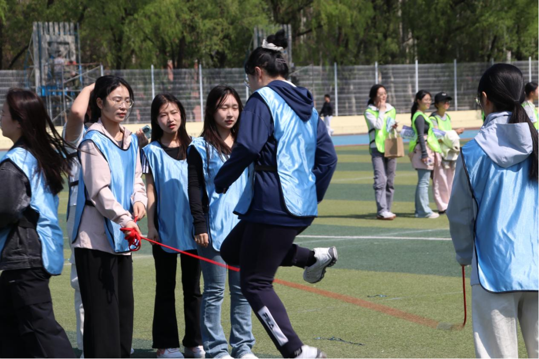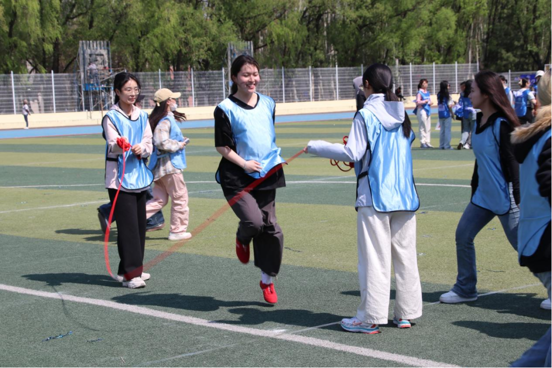 进如游鱼穿浪,轻盈跃过绳影翻飞的弧线;退似雁阵回旋,迅捷让出下一人的起跳空间,当前一人凌空之时,后一人已躬身预备。手腕翻飞,绳影如风,每一次跳跃都伴随着急速的心跳,每一次交接都是信任与力量的延续,一根跳绳,传递着速度与默契,哲社代表队在每一次的挥动与跳跃中挑战自我,在每一次的传递与接替中缔结信任。