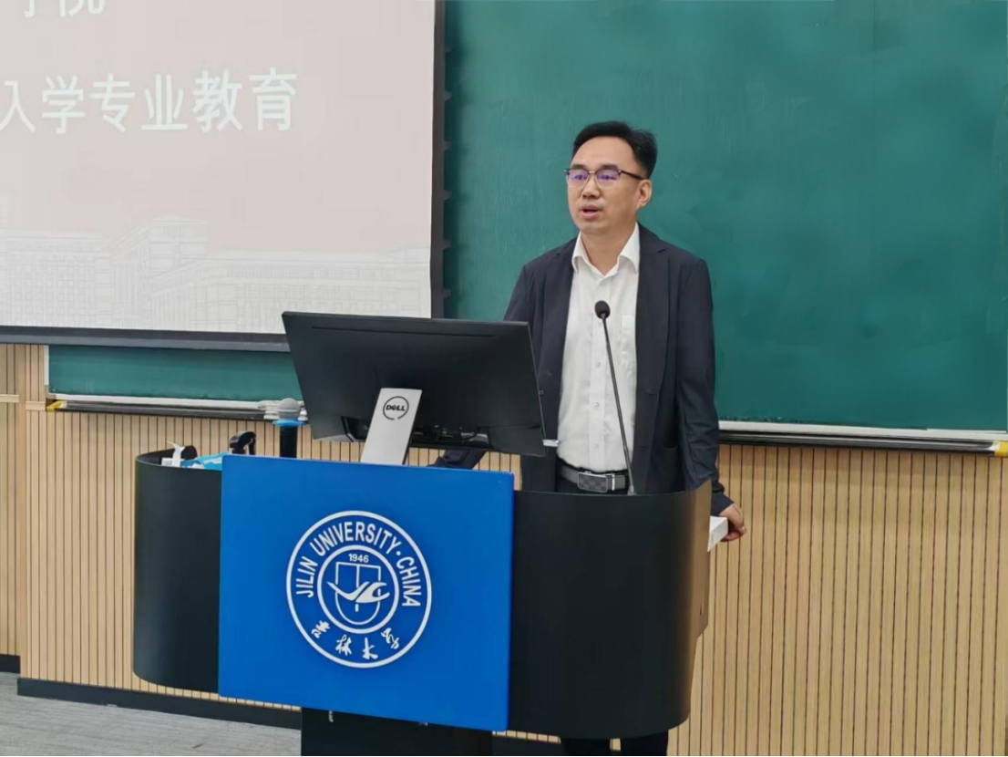 李龙老师向全体新生介绍了学院学科体系框架,讲述了学院的院史传统和优良学风。他鼓励同学们深入掌握本次专业教育的内容,逐步建立起对所学专业的系统把握与清晰认知,同时留下自己的联系方式,表示期待与同学们就学习问题未来进行深入交流。