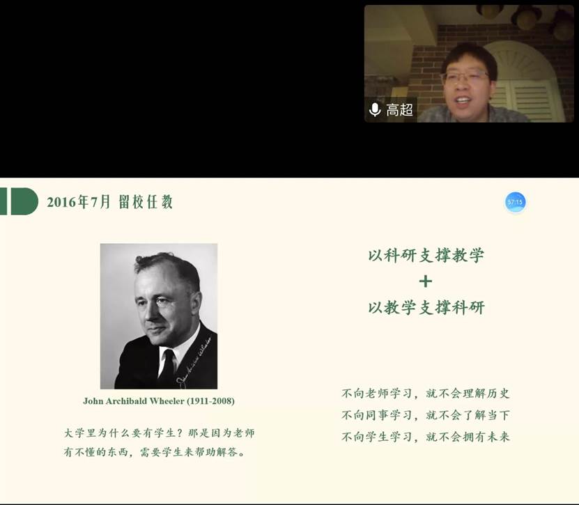 高超老师以“从自由大路到前进大街——一个哲学青年的成长与感悟”为题,通过叙述个人发展经历,为同学们解答了“为什么要走学术道路”、“能否走学术道路”以及“学术道路要怎么走”的问题。