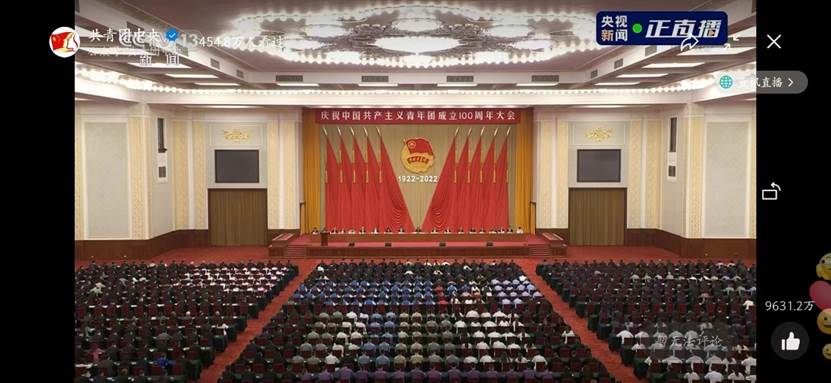 庆祝中国共产主义青年团成立100周年大会于5月10日上午10点在北京人民大会堂隆重举行。为贯彻“喜迎二十大、永远跟党走、奋进新征程”主题教育实践活动安排,best365官方中文网页版登录组织全体学生线上观看大会直播,并对习近平总书记讲话进行集中学习。