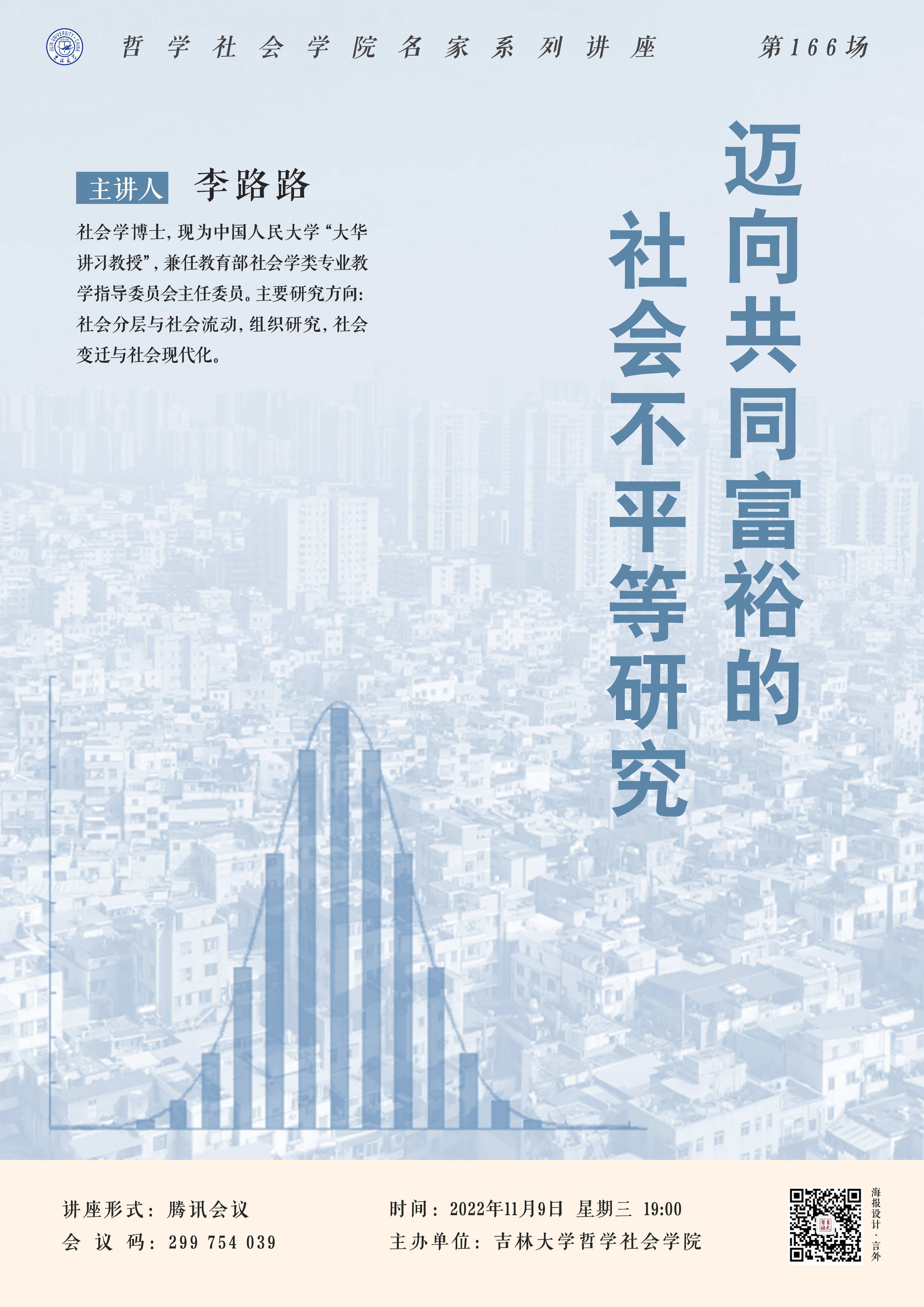 【best365官方中文网页版登录名家系列讲座第166场】李路路:迈向共同富裕的社会不平等研究