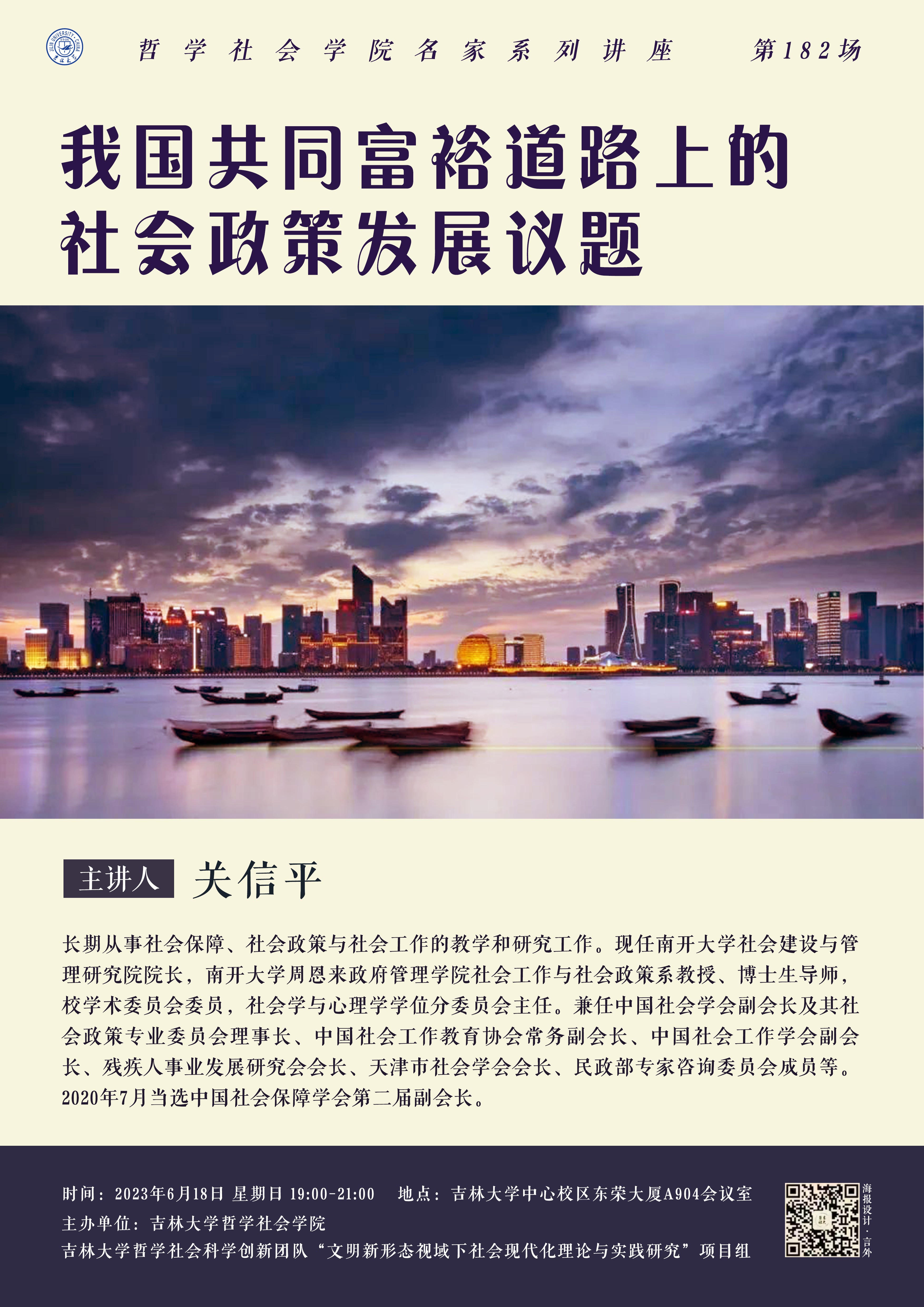 【best365官方中文网页版登录名家系列讲座第182场】关信平:我国共同富裕道路上的社会政策发展议题