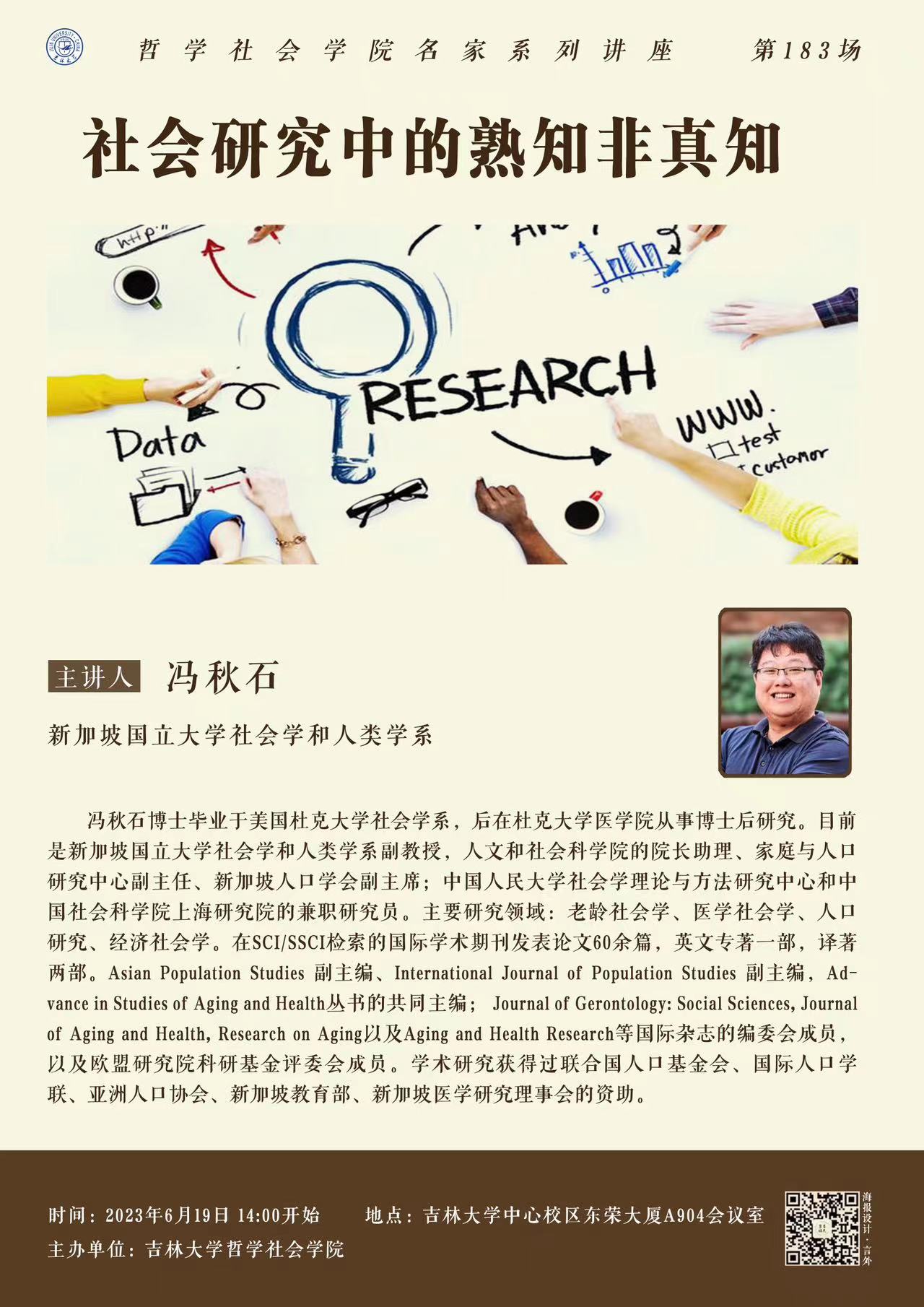 【best365官方中文网页版登录名家系列讲座第183场】冯秋石:社会研究中的熟知非真知