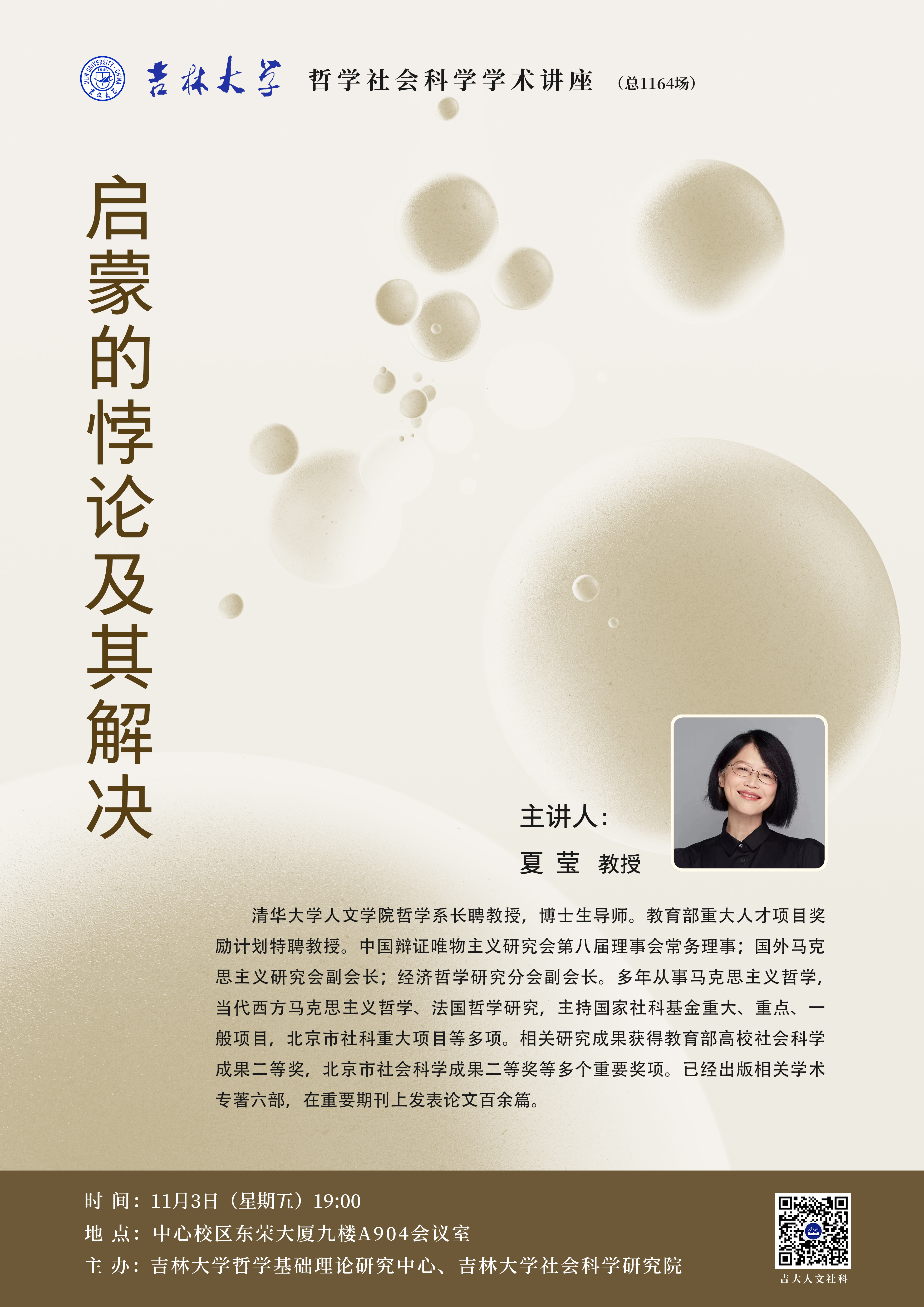 best365官方中文网页版登录哲学社会科学学术讲座(总1164场)夏莹:启蒙的悖论及其解决