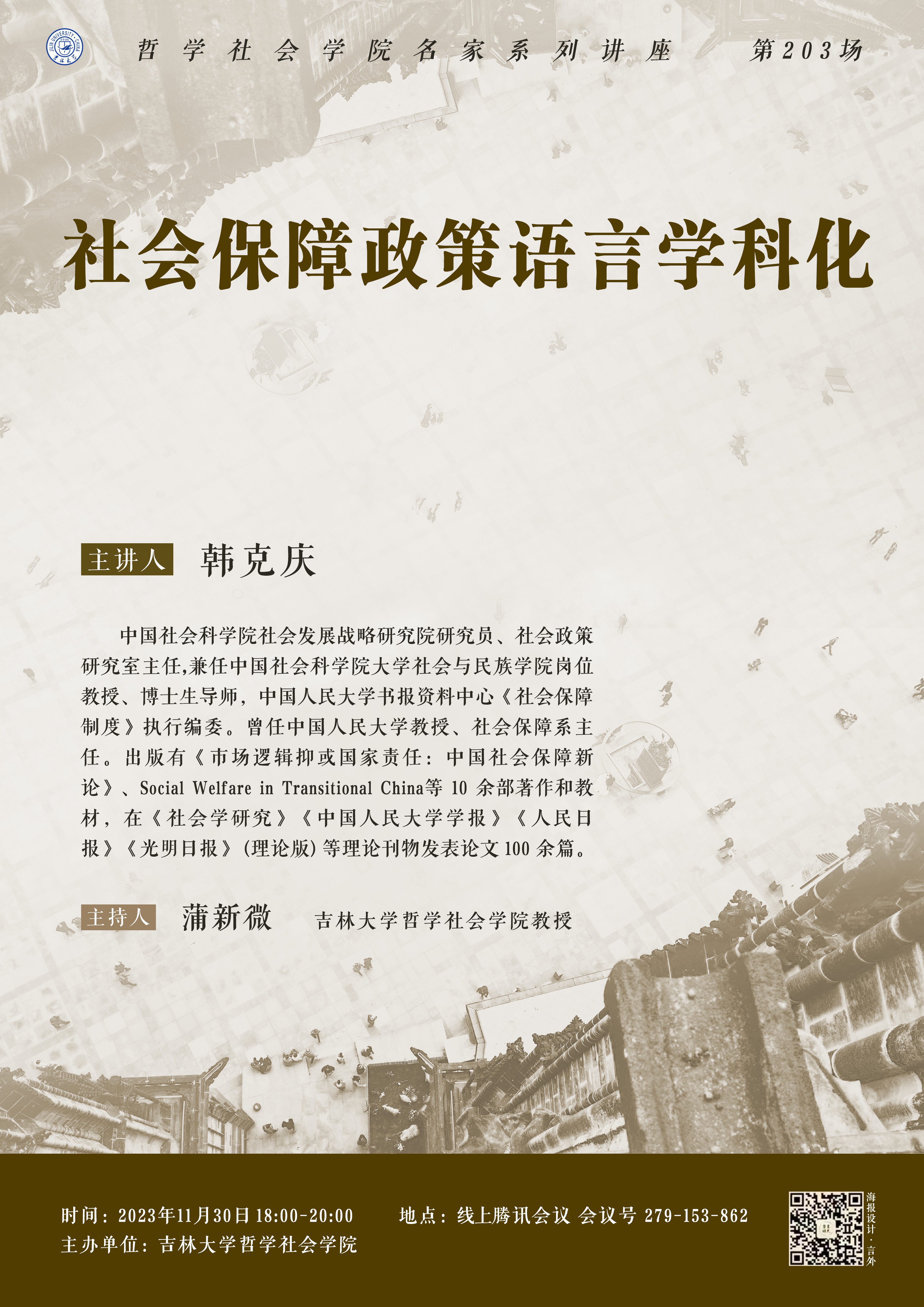 【best365官方中文网页版登录名家系列讲座第203场】韩克庆:社会保障政策语言学科化