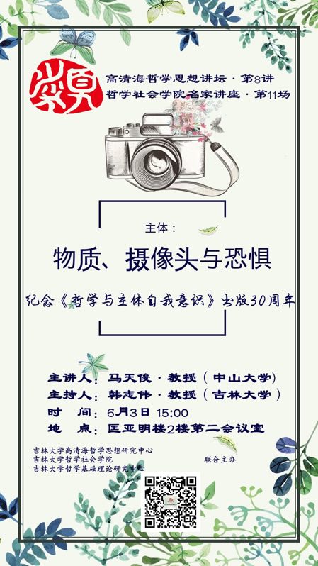 【高清海哲学思想讲坛第8讲】【best365官方中文网页版登录名家系列讲座第11讲】物质、摄像头与恐惧:纪念《哲学与主体自我意识》出版30周年