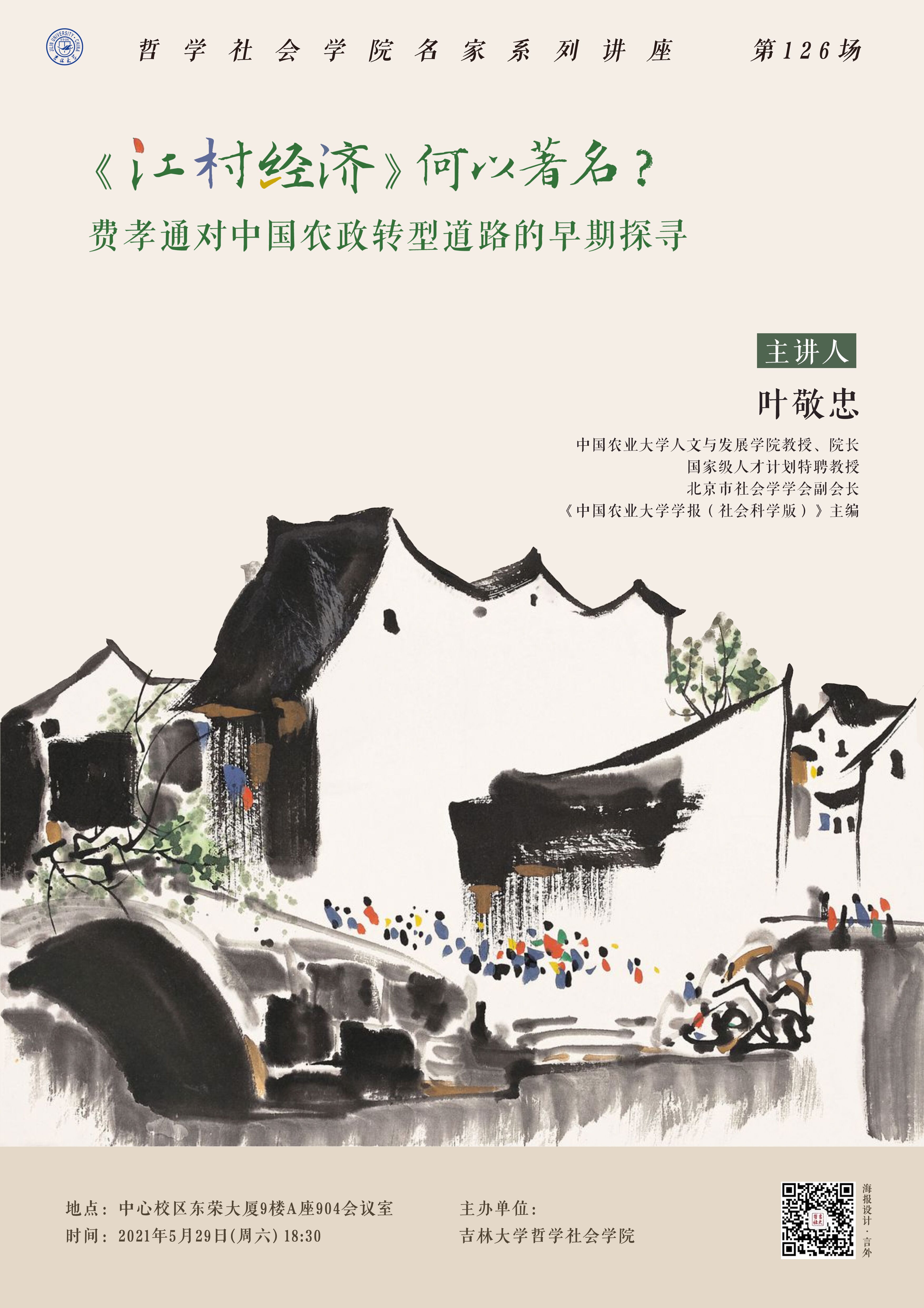 【best365官方中文网页版登录名家系列讲座第126讲】叶敬忠:《江村经济》何以著名?——费孝通对中国农政转型道路的早期探寻