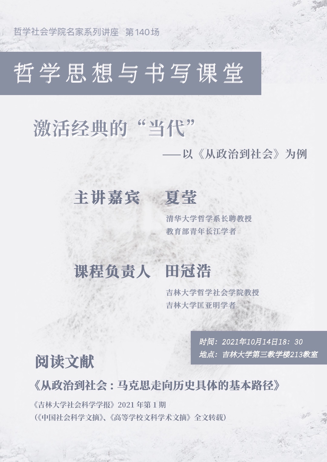 【best365官方中文网页版登录名家系列讲座第140场】【哲学思想与书写讲堂】夏莹:激活经典的“当代”——以《从政治到社会》为例