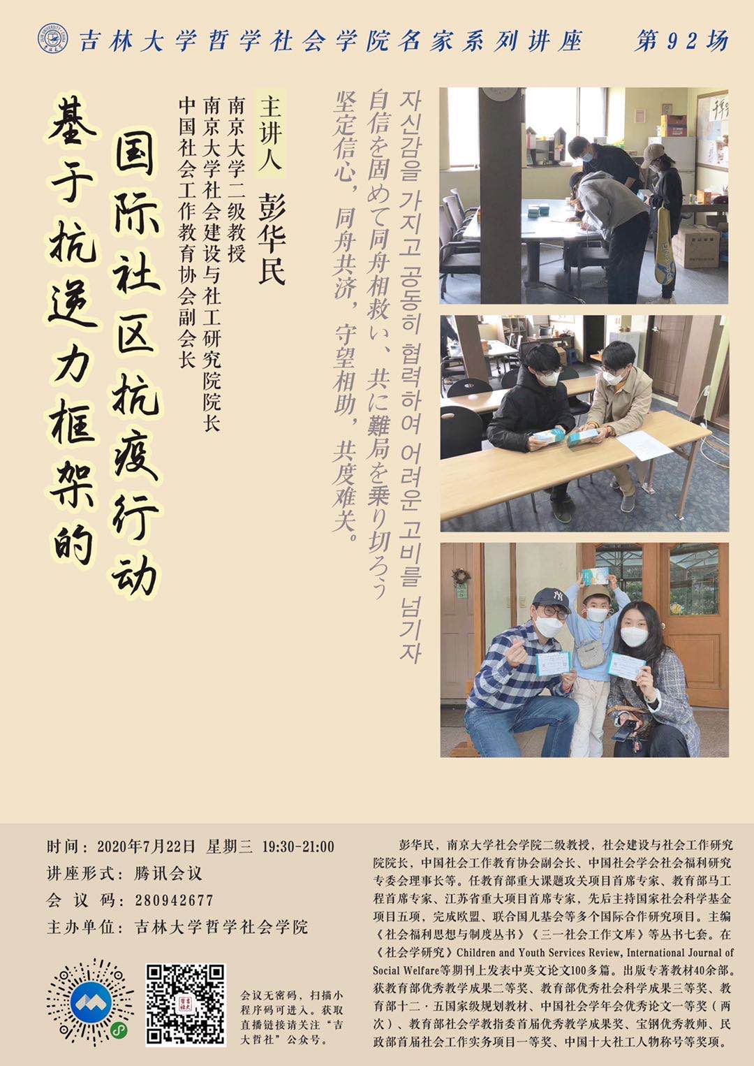 【best365官方中文网页版登录名家系列讲座第92场】彭华民:基于抗逆力框架的国际社区抗疫行动