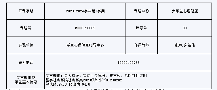 根据《关于进一步明确本科生课程考核等有关问题的通知》(校教字[2018]47号)文件有关精神,现对一下课程成绩更正进行公示: