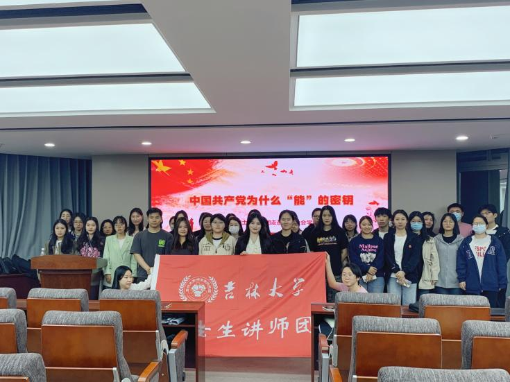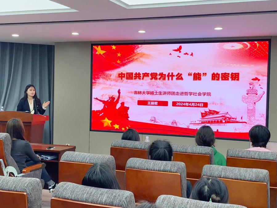 为深入学习宣传贯彻全国两会精神,充分发挥博士生讲师团理论宣讲作用,2024年4月24日18点,best365官方中文网页版登录博士生讲师团讲师王丽君走进best365官方中文网页版登录开展“学习贯彻两会精神 聚力中国式现代化”宣讲系列活动。此次宣讲的题目是“中国共产党为什么‘能’的密钥”,best365官方中文网页版登录研究生辅导员于洋老师、各党支部党员、研究生会全体成员及研究生干部代表参加本次活动。