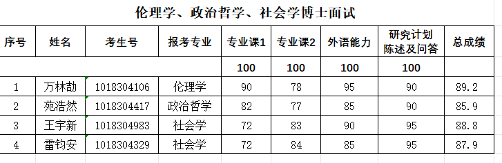 经best365官网组织专家组审查和复试考核,现将best365官方中文网页版登录2024年伦理学、政治哲学、社会学专业博士面试成绩予以公示,公示期为2024年5月21日至2024年5月23日。如有异议,请于公示期内向best365官网反映。
