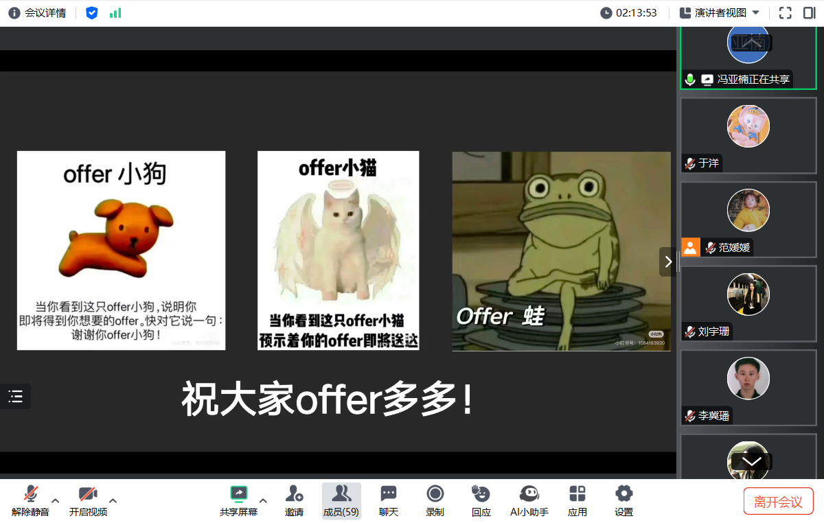 此次就业分享会不仅解答了同学们在求职过程中的迷茫与困惑,更增强了同学们求职信心,引导同学们逐步树立正确的就业和择业观念,提升求职技能和职业规划能力。未来,学院将继续响应国家“稳就业”“保就业”的政策号召,定期举办就业经验分享系列活动,为同学们的求职就业保驾护航!