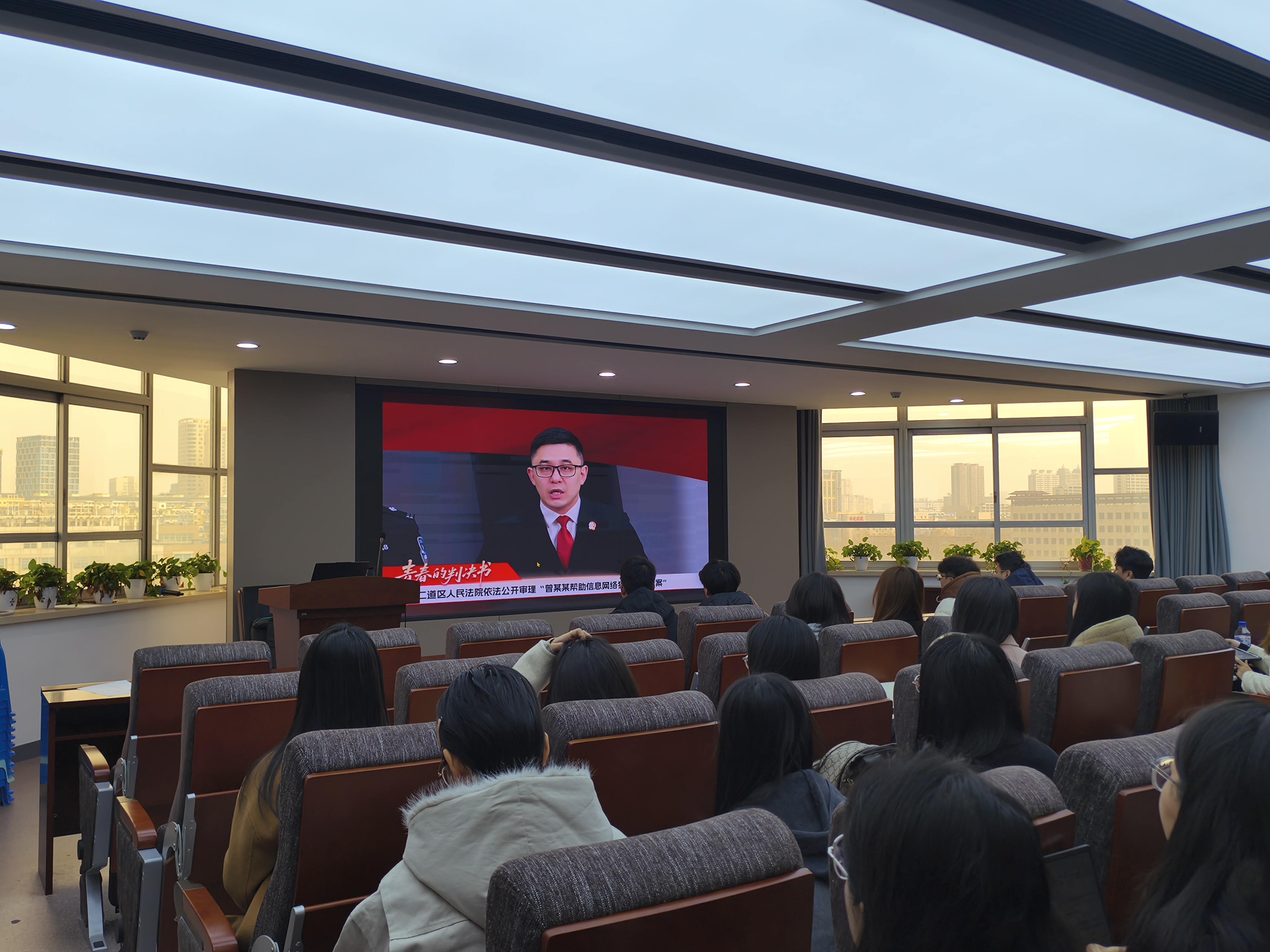 为有效增强在校学生防范诈骗的能力,构建一个安全的校园环境,值此第十个国家安全日到来之际,2025年4月15日上午九时,best365官方中文网页版登录在东荣大厦904会议室组织研究生线下观看了“长春公安与长春中院联合举办的‘直击电诈庭审现场全媒体联动’”直播活动。